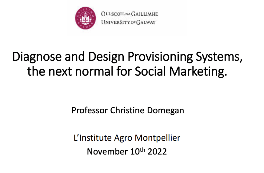 Répondant à l’invitation de Lucie Siriex, Christine Domegan a donné une conférence à SupAgro Montpellier le 10 novembre 2022 sur son récent article à propos des systèmes d’approvisionnement en temps de crise. Voici sa présentation power point ainsi que l’enregistrement audio de son intervention. C-Domegan-Montpellier-Keynote-November-2022Télécharger Enregistrement audio…